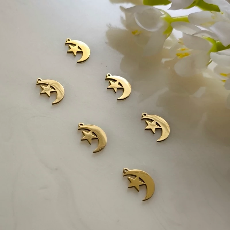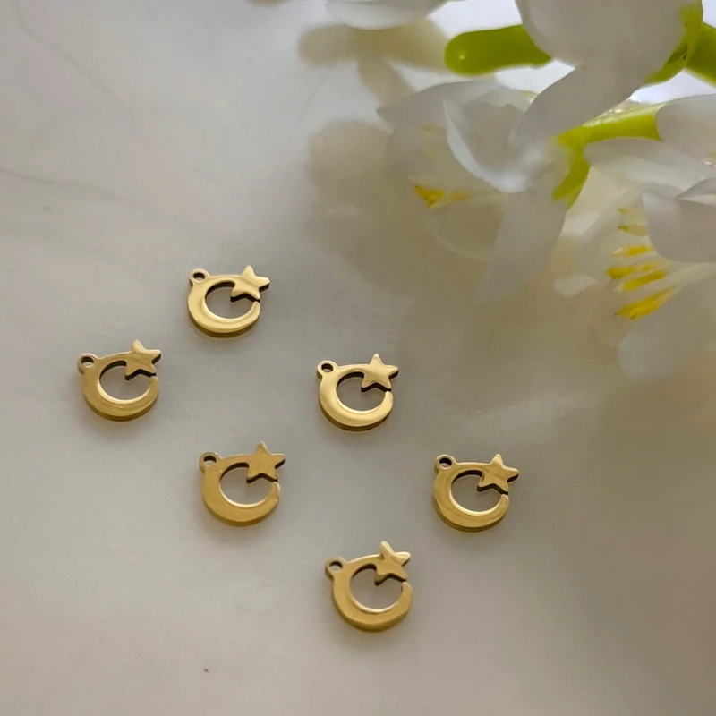 پلاک آویز ساعتی طرح ماه و ستاره کوچک1 طلایی(فروش محصول بصورت دونه ای میباشد)