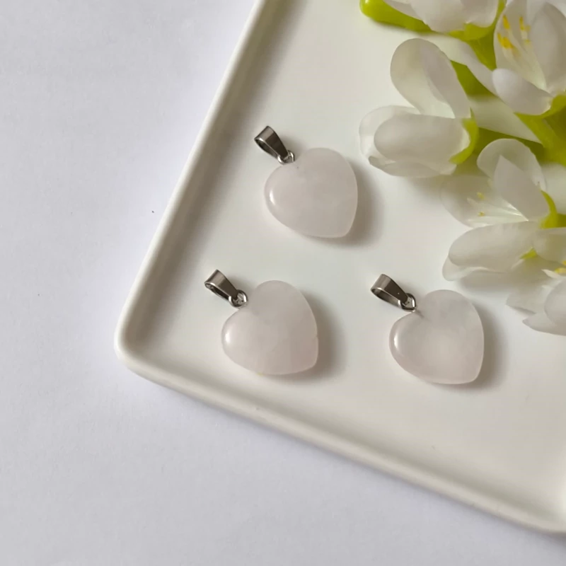آویز سنگ رز کوارتز طرح قلب (فروش بصورت دونه ای)