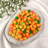 خرجکار طرح نارنگی مناسب جهت ساخت دستبند، آویز و انواع بدلیجات یلدایی- این محصول به صورت دانه ای عرضه میشود. آویز های قشنگمون بصورت دستساز تولید شده جنسشون پلاستیکی فشرده و نشکنه سایز 1.5 سانت