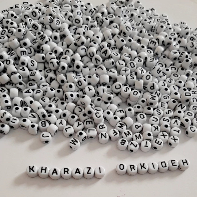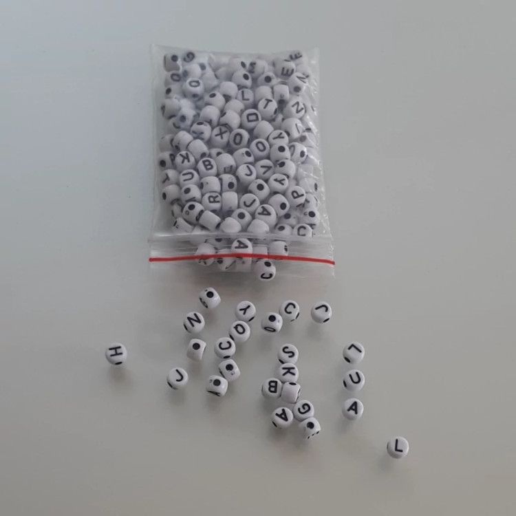 مهره حروف لاتین طرح گرد سفید مشکی (بصورت بسته 25 گرمی شامل 175 دونه)