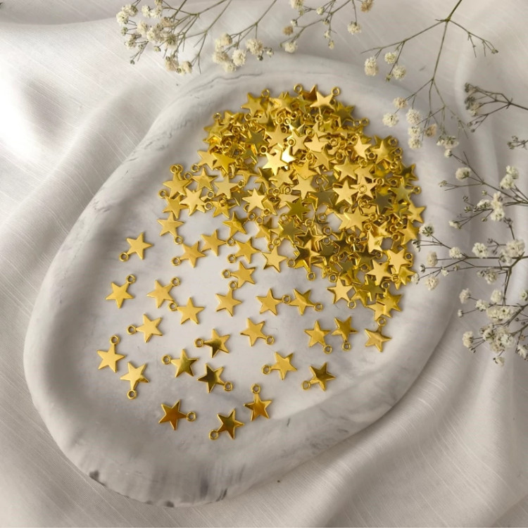 خرجکار آویز ستاره برای ساخت انواع بدلیجات کاربرد دارد جنس کار فلزی میباشد رنگ ثابت نیست. فروش بصورت بسته 25 عدد آویز ستاره
