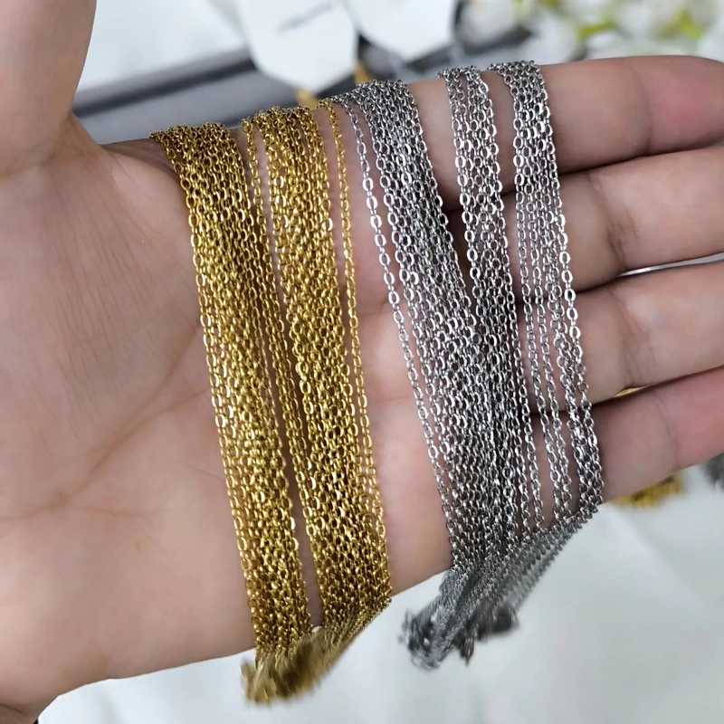 این محصول بصورت زنجیر آماده 50 سانتی عرضه میشود. دارای قفل و حلقه اتصال میباشد. جنس زنجیر استیل و رنگ ثابت وضدحساسیت میباشد. 🌟قیمت درج شده برای یک عدد زنجیر حساب شده 🌟 اگر اندازه کوتاه و یا بلند زنجیر را میخواهید میتوانید در قسمت گفتگو با غرفه دار هماهنگ کنید.