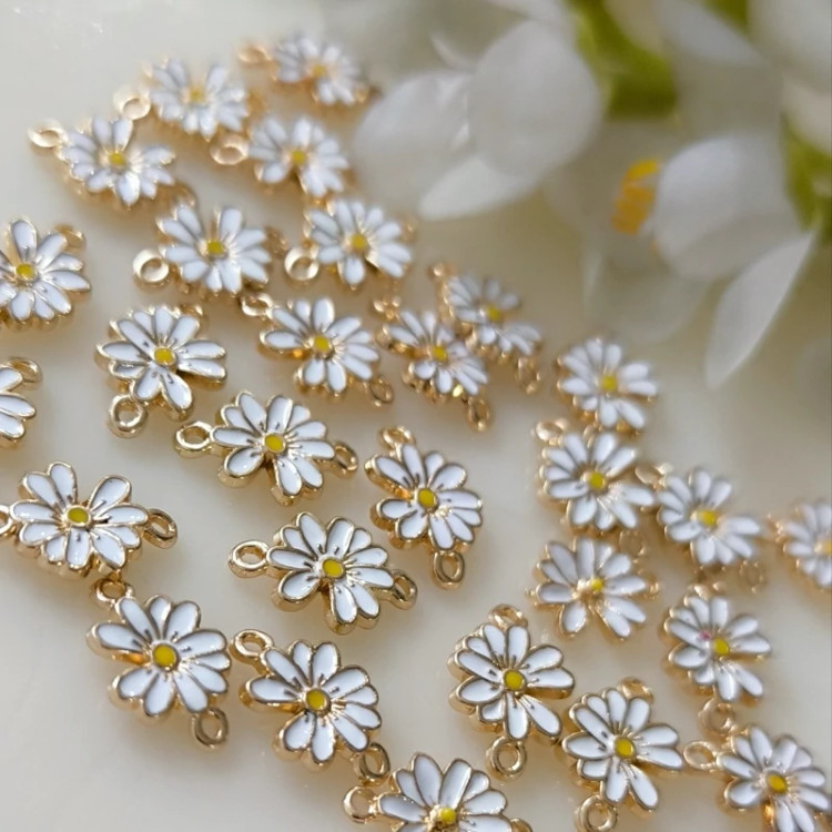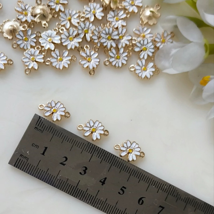 پلاک وسط دستبند طرح گل بابونه - از این نوع کار جهت ساخت انواع دستبند،گیره روسری ، گردنبند،گوشواره و ... استفاده میشود و به صورت دونه ای عرضه می شود. پشت پلاک به رنگ طلایی میباشد.