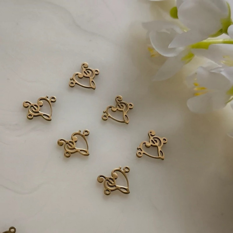 پلاک آویز ساعتی طرح قلب و نت طلایی(فروش محصول بصورت دونه ای میباشد)