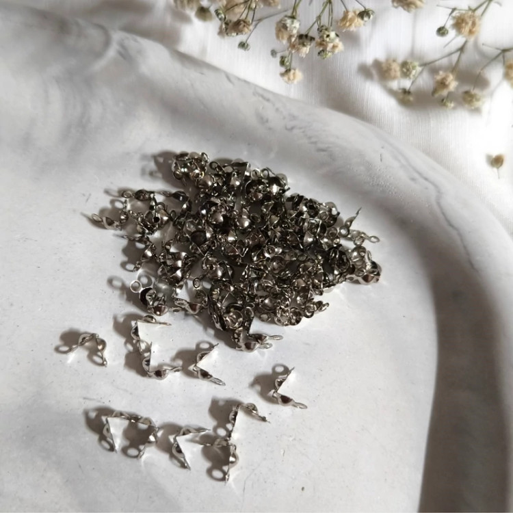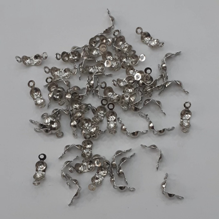 گره مخفی کن به رنگ نقره ای جهت حذف گره های نخ های استفاده شده در دستبند، بند عینک و گردن آویز کاربرد دارد و در بسته های 5 گرمی و 60 عددی عرضه می شود.