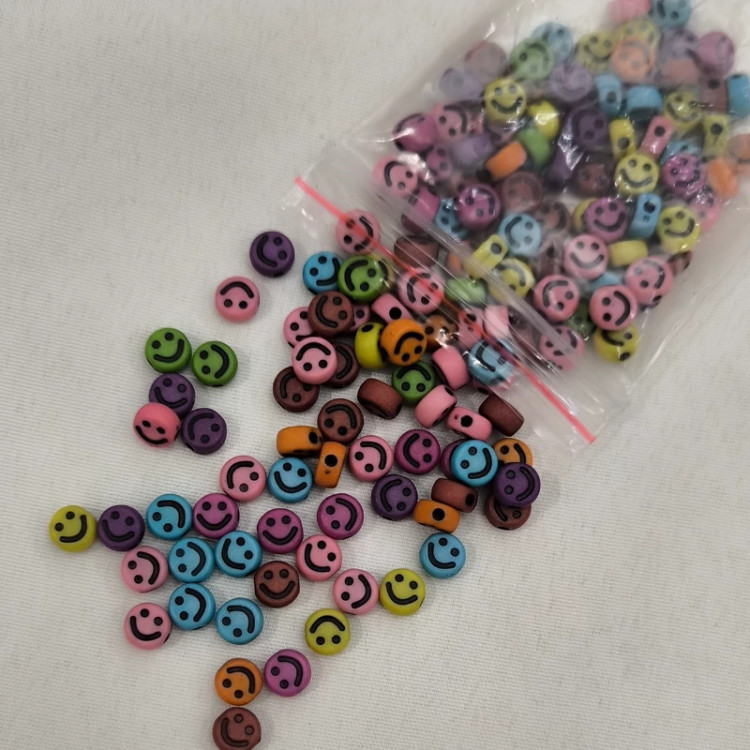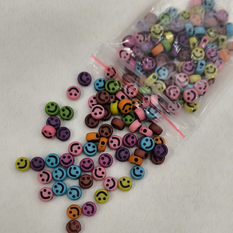 مهره استیکر طرح لبخند - از این مهره ها جهت ساختدستبند، کارهای رزینی و انواع بدلیجات استفاده می شود و به صورت بندی شامل 145 دونه عرضه می شود.