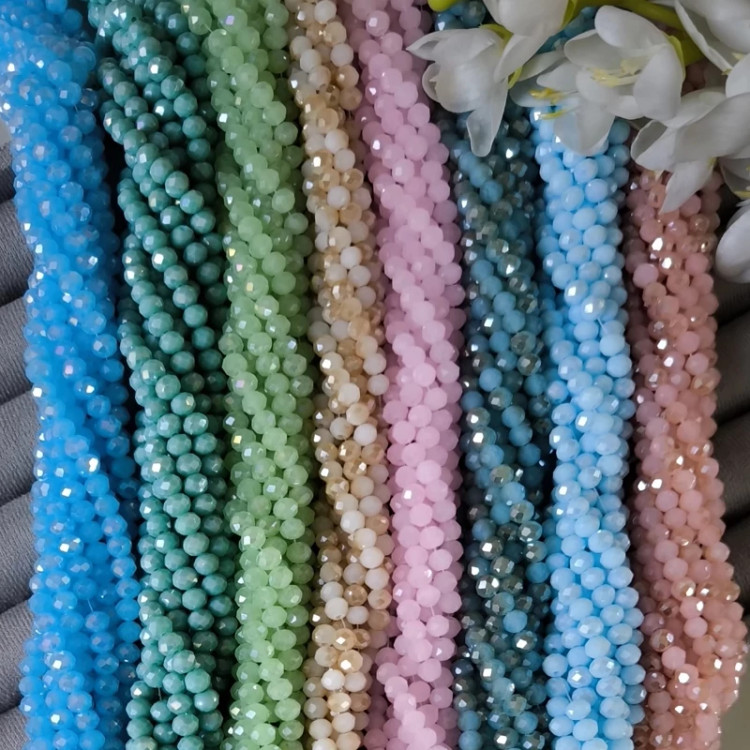 کریستال تراشدار سایز 6 : این مهره ها به صورت براق یا مات و در سایزهای بسیار متنوع برای ساخت انواع دستبند، گردن آویز، انواع بندهای نگه دارنده و تزیینی ، بافت گلدان ، رو میزی ، لوستر ، انواع صنایع دستی و… تولید شدهاند. بصورت ریسه ای بفروش میرسد.