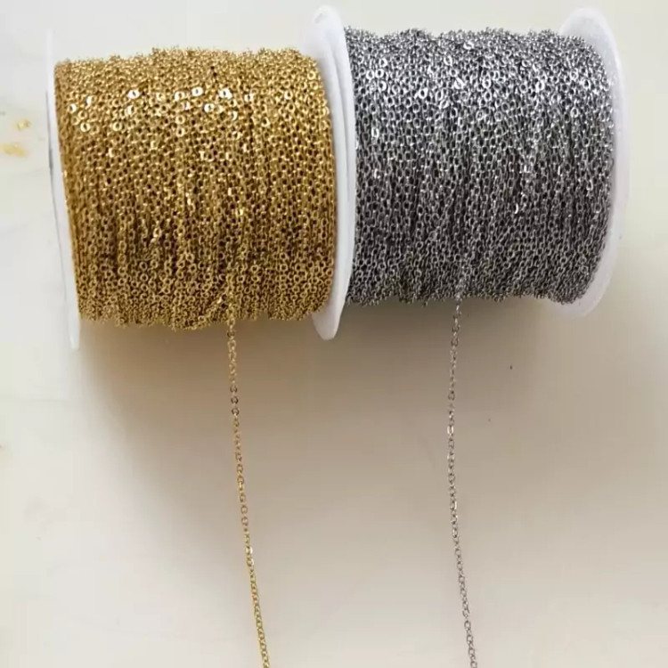 زنجیر استیل طلایی طرح ساده- جهت ساخت انواع گردنبند، پابند و دستبند قابل استفاده می باشد و فروش آن نیز به صورت متری می باشد.