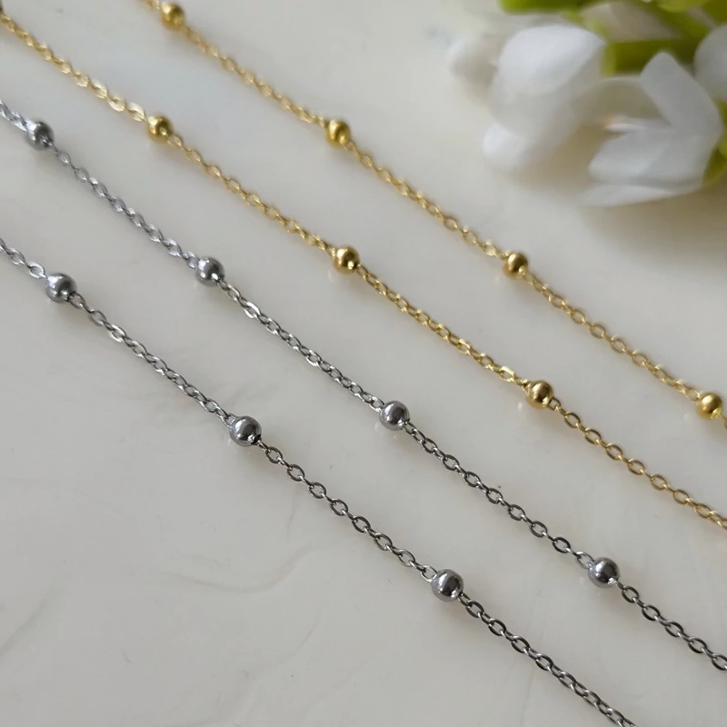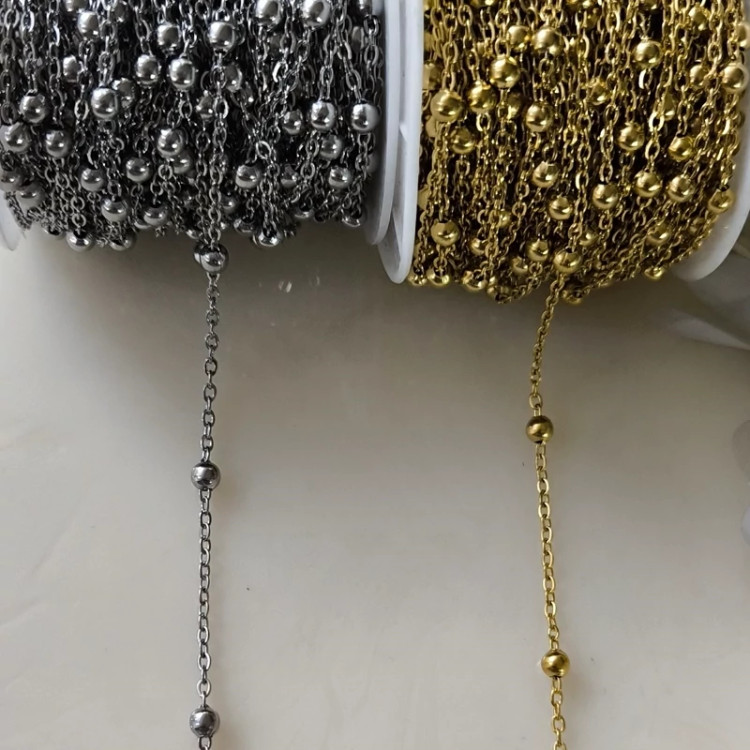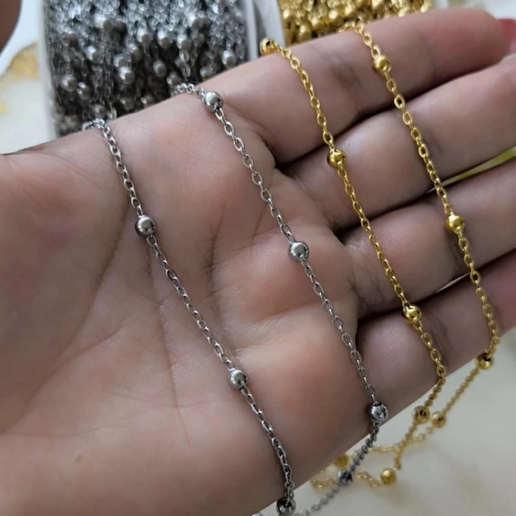 زنجیر استیل مدل گوی دار- جهت ساخت انواع گردنبند، پابند و دستبند قابل استفاده می باشد و فروش آن نیز به صورت متری می باشد.