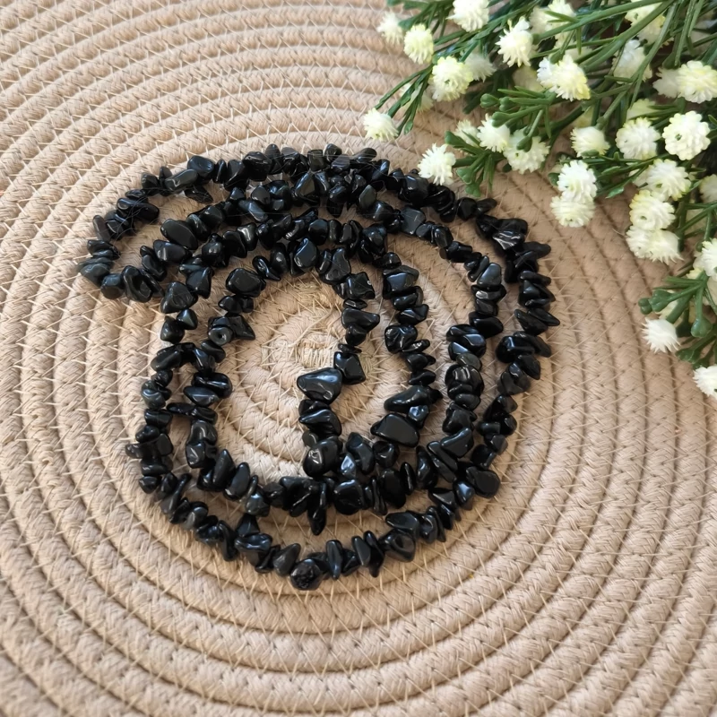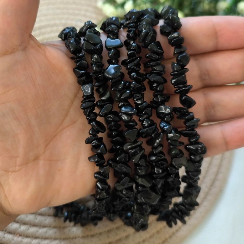 سنگ راف ابسیدین مشکی- این محصول جهت ساخت انواع دستبندها و گردن آویزهای جذاب قابل استفاده می باشد و به صورت بند 40 سانتی عرضه می شود.
