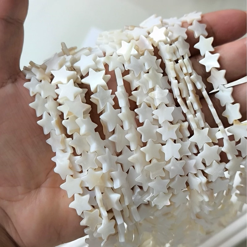 سنگ صدف اصل طرح ستاره سایز 10 میل (فروش بصورت ریسه ای)