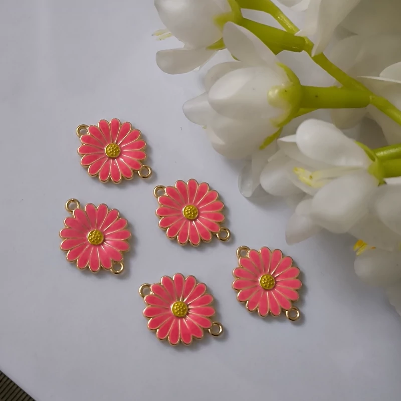 پلاک دستبند بابونه سرخابی(فروش بصورت دانه ای)