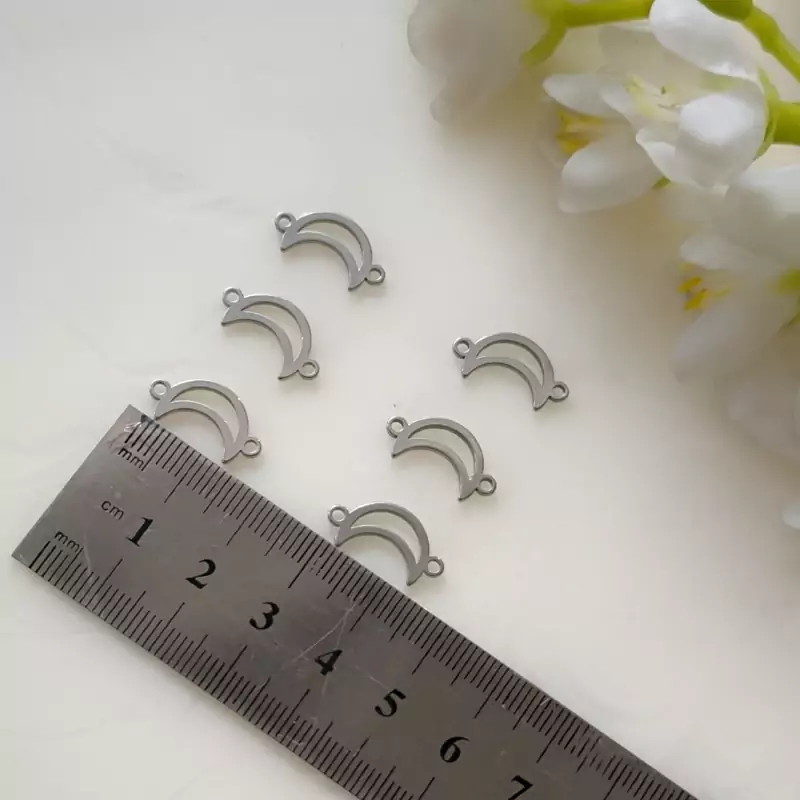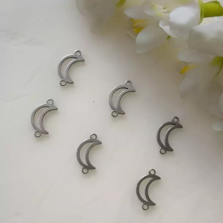 پلاک دستبندی استیل طرح ماه- این محصول برای ساخت دستبند کاربرد دارد جنس پلاک استیل و رنگ ثابت میباشد بصورت دونه ای فروش میرود.