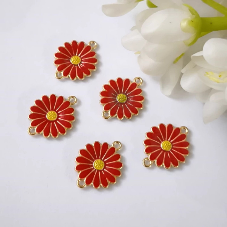 پلاک دستبند بابونه قرمز(فروش بصورت دانه ای)