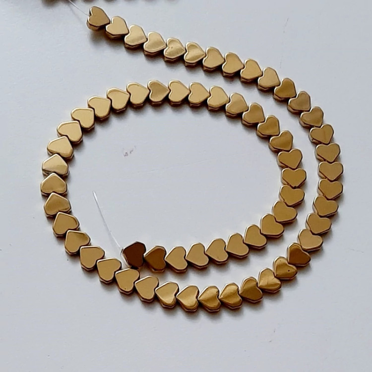 سنگ حدید طرح قلب رنگ طلایی موجود میباشد و بصورت بندی شامل 55 دانه عرضه میشود برای ساخت انواع دستبند،گردنبند،گوشواره و... کاربرد دارد