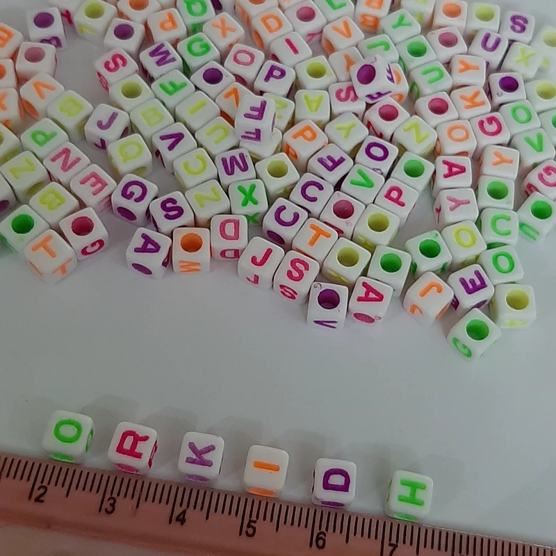 مهره حروف لاتین- از این مهره ها جهت ساخت انواع دستبند ،فونچارم، گردنبند و ...استفاده می شود و به صورت بسته ۲۵ گرمی شامل ۱۴۵ دونه عرضه می شود.