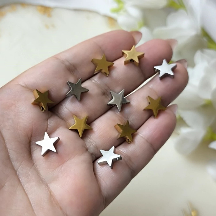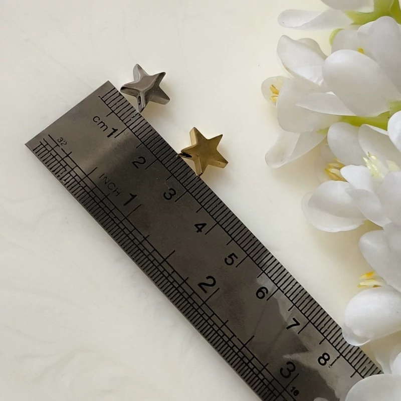 پلاک استیل ستاره در دو رنگ طلایی براق و نقره ای براق عرضه میشه و فروش این مدل کار به صورت دونه ای هستش. برای کارهای ظریف و مینیمال کاربرد دارد جنس استیل و رنگ ثابت با طلا مو نمیزنه👌