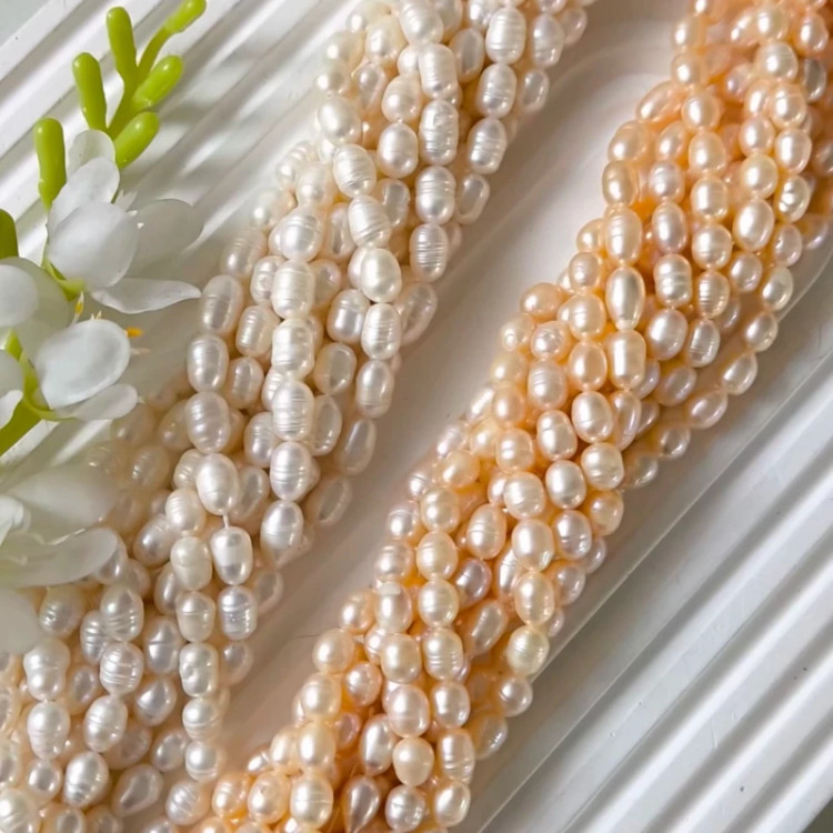 مروارید پرورشی طرح گندمی نامنظم سایز 8 (فروش بصورت بندی شامل 35 مهره)