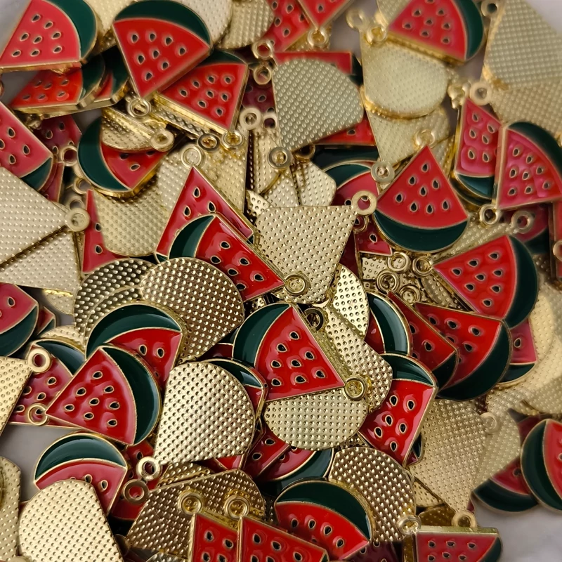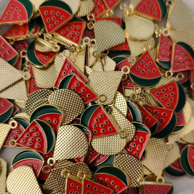 پلاک آویز هندونه برای ساخت انواع گردنبند،گوشواره،دستبند بچه گانه یلدایی و... کاربرد دارد رنگ پلاک ها ثابت نیست نیاز به مراقبت دارد