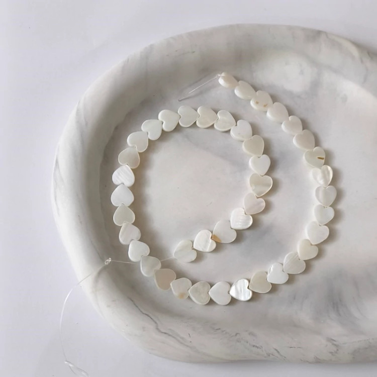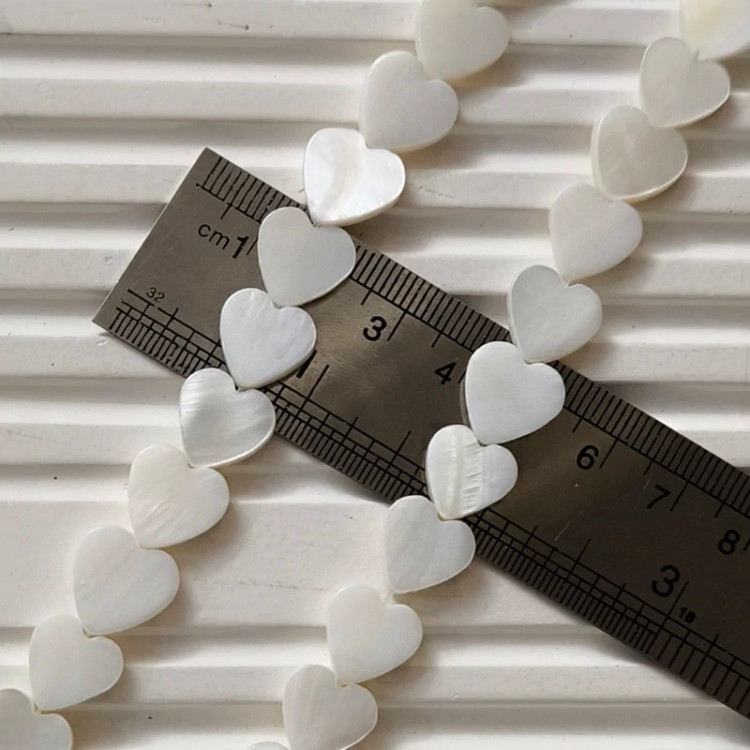 سنگ صدف اصل طرح قلب وسط سوراخ (سایز مهره ها 12 میلی و بصورت ریسه ای شامل 33 مهره بفروش میرسد)