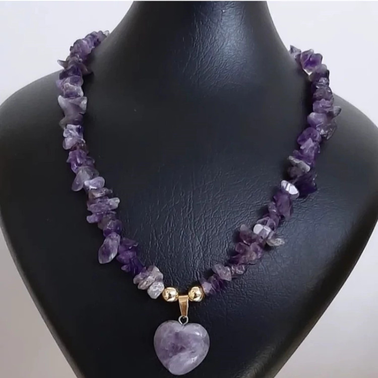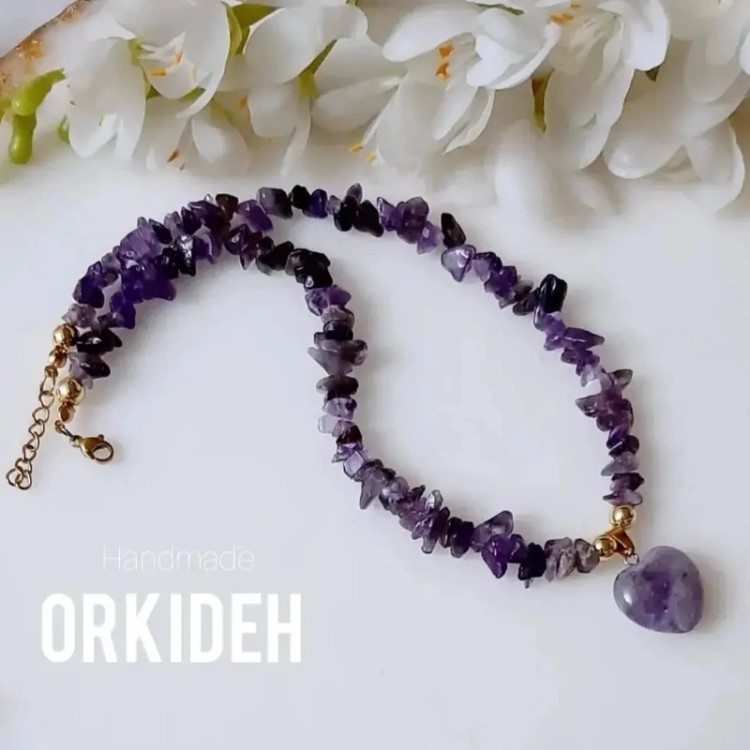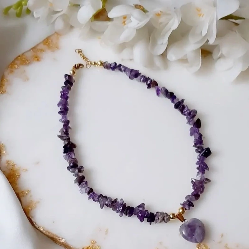 هر چی از زیبایییی و خاص بودن این گردنبند بگم کمه🤩💖 گردنبند زیبامون با سنگ آمیتیست و سنگ حدید کار شده🤌 متریال کار شده رنگ ثابت میباشد😇 اندازه گردنبند ۴۰ سانت دارای ۱۰ سانت زنجیر اضافی برای تنظیم سایز