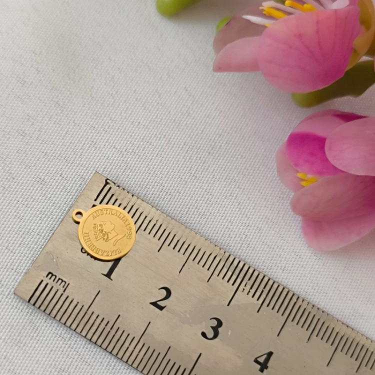 خرجکار طرح سکه الیزابت- در ساخت دستبند و گردن آویز و ... بکار می رود جنس استیل و رنگ ثابت دو طرف پلاک طرح الیزابت میباشد بصورت دونه ای عرضه می گردد.