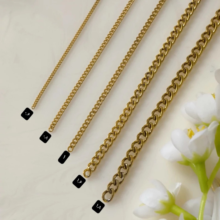 زنجیر کارتیر استیل سایز ۰.۶ تراش خورده در ساخت دستبند و گردن آویز بکار می رود. جنس کار نیز استیل رنگ ثابت می باشد و بصورت متری عرضه می شود.