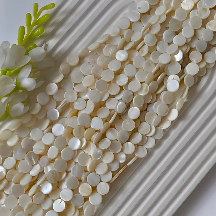 سنگ صدف اصل طرح گرد 12 میلی (فروش بصورت ریسه ای شامل 30 مهره)