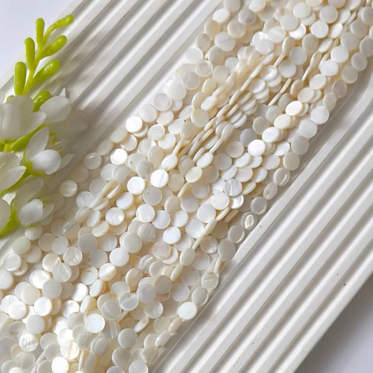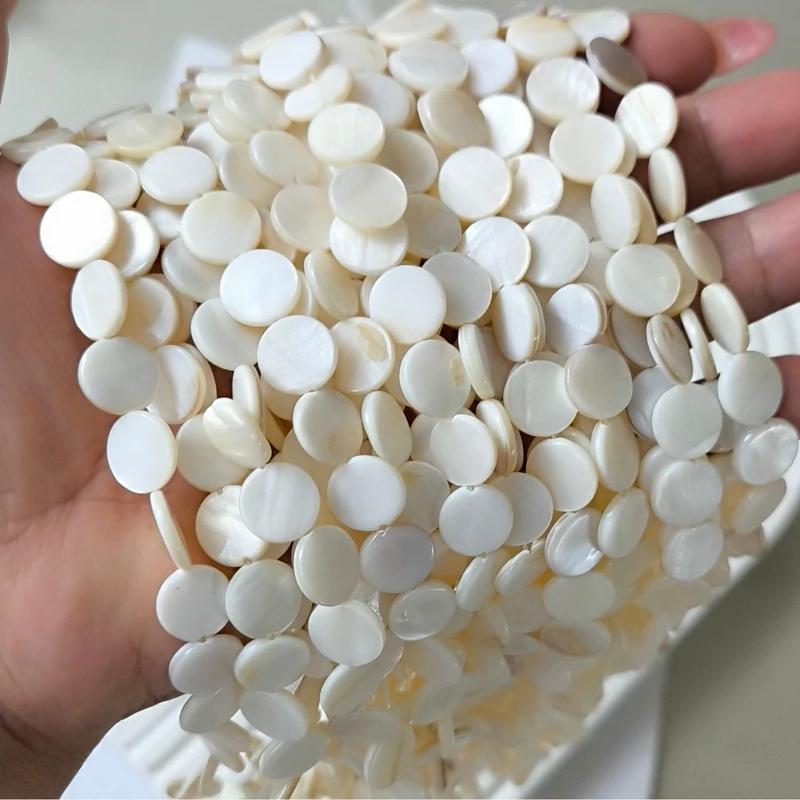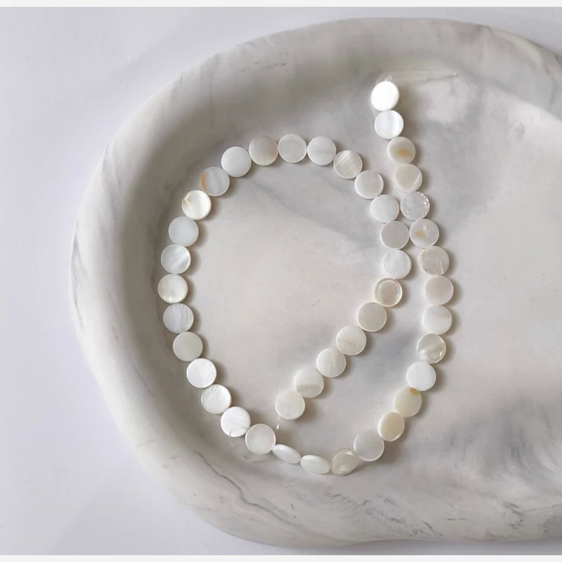 سنگ صدف اصل طرح گرد 10 میلی (فروش بصورت ریسه ای شامل 40 مهره)