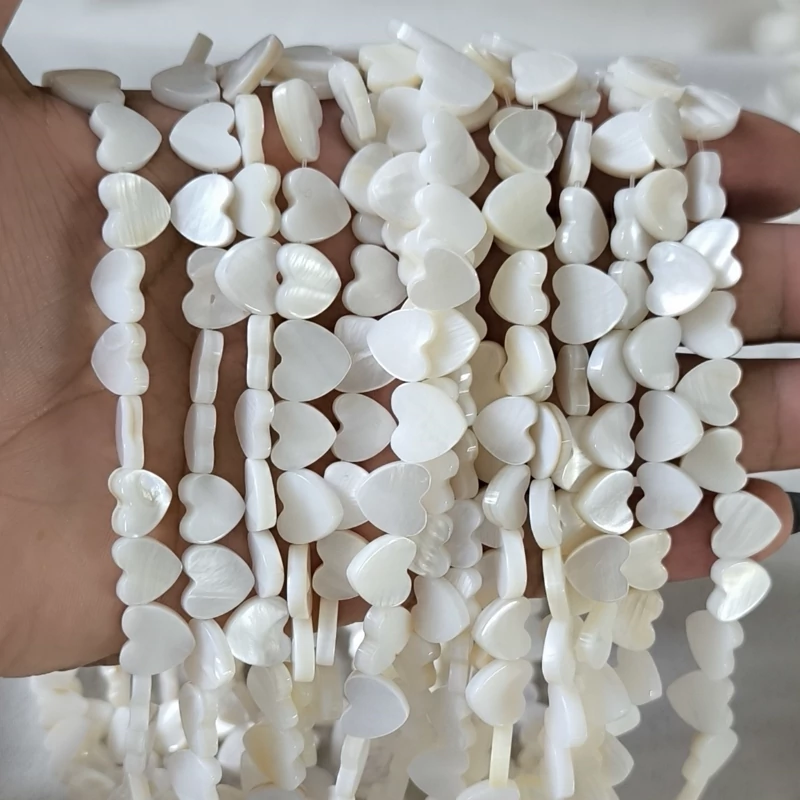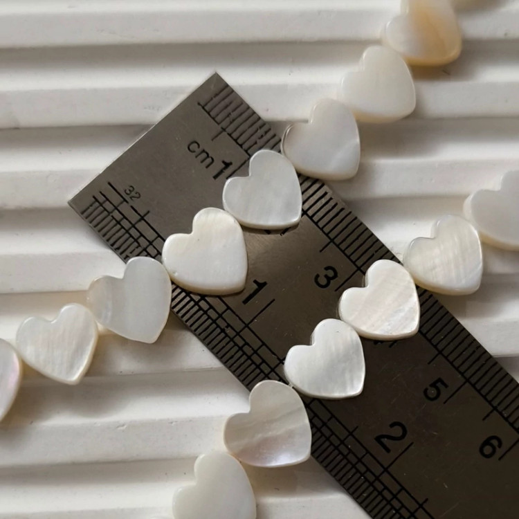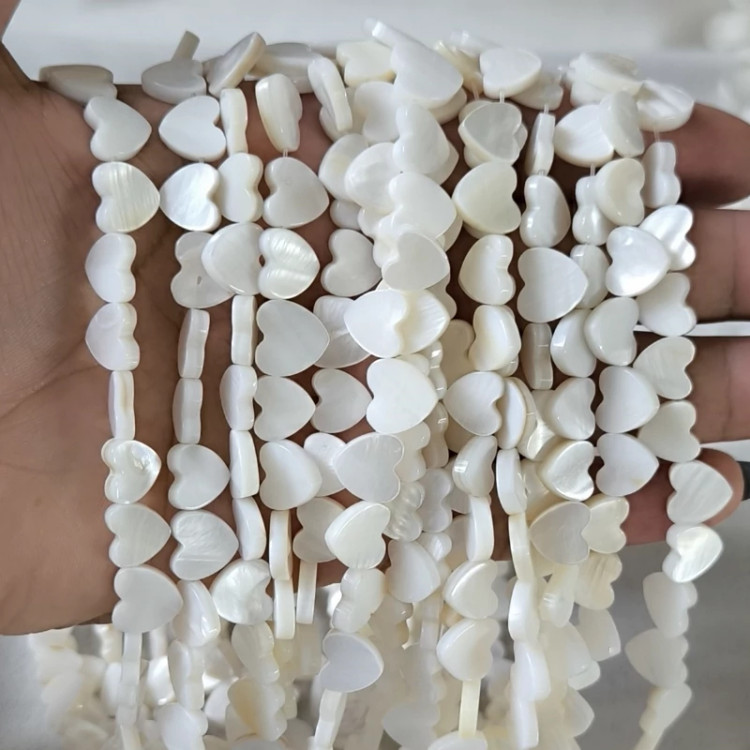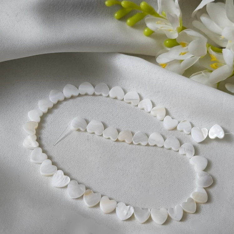 سنگ صدف اصل طرح قلب کنار سوراخ(سایز مهره ها 10 میلی و بصورت ریسه ای شامل 35 مهره بفروش میرسد)