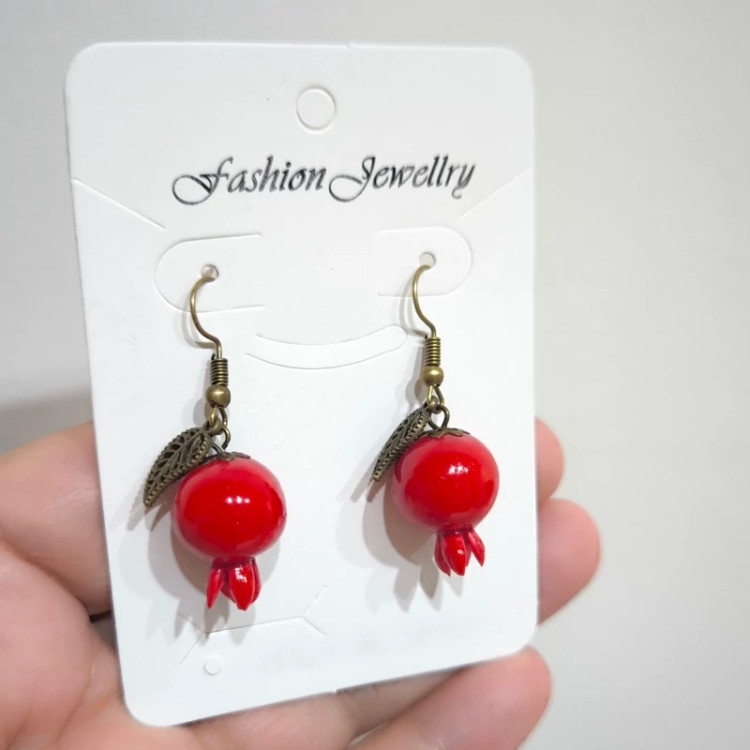 «گوشواره اناری یلدایی رسید 🍒✨ کاملاً دخترونه و ظریف، مناسب هدیه شب یلدا. اگر دنبال زیورآلات خاص و قیمت مناسب میگردی، این مدل یکی از پرفروشترین گوشوارههای یلداست ❤️» «فروش گوشواره به همراه کارت و سلفون»