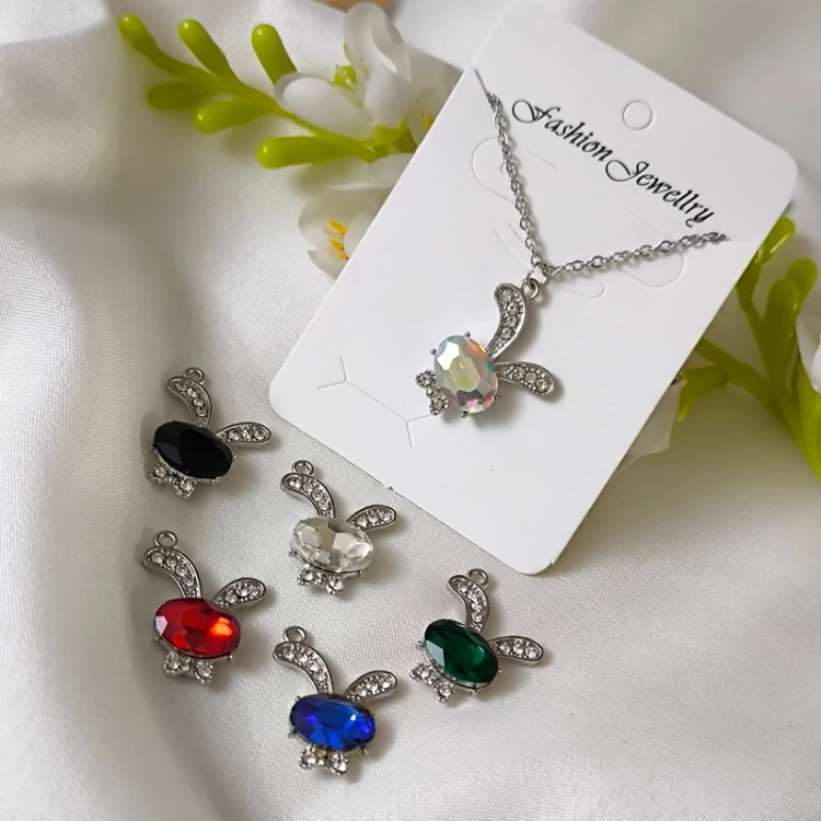 گردنبند زیبای خرگوش زنجیر گردنبند استیل و رنگ ثابته نگین های کار شده روی آویز مخراجکاری و بدون ریزش اندازه زنجیر 45 سانت