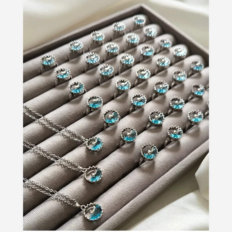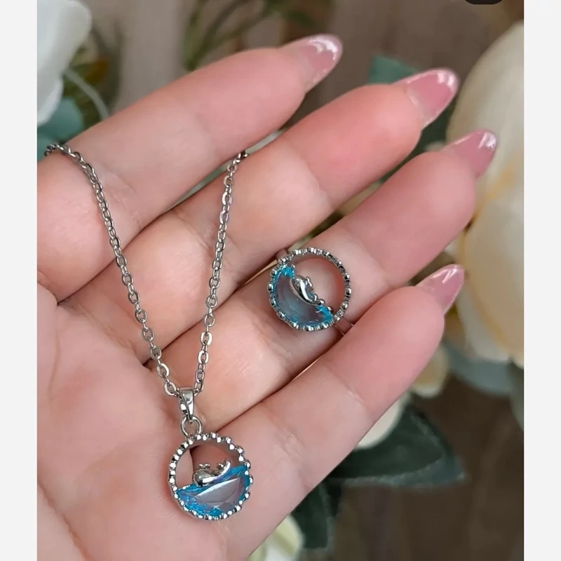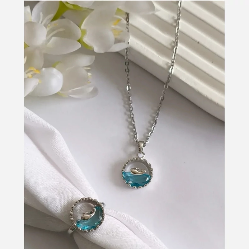 ست انگشتری و گردنبند سوارسکی طرح دلفین (انگشتری فری سایز می باشد)